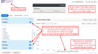 | current | 22:36, 4 September 2017 | 1,414 × 788 (212 KB) | Ucanwest (Talk | contribs) | Screen capture showing the locations of key elements needed to create a citation to a data table in BMI Research. Actual data (not needed for the citation) has been hidden. | |